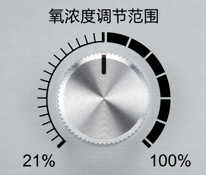 空氧混合器以纯机械方式,把一定压力的空气、氧气进行比例混合,精确控制混合气体的氧浓度,氧浓度调节范围21~100% 。