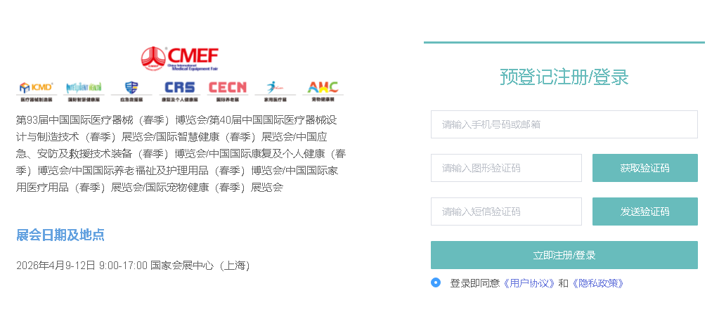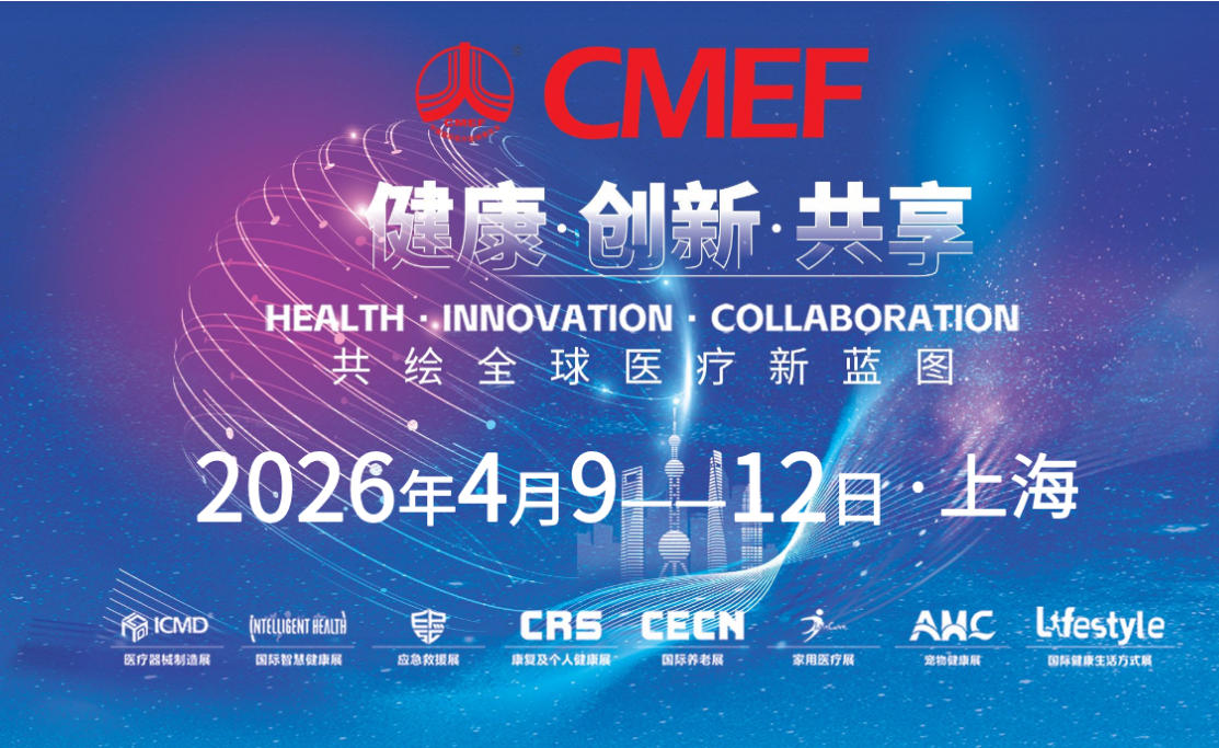 第93届CMEF(中国国际医疗器械博览会)携CRS(康复及个人健康展)、CECN(养老福祉展)、Life Care(家用医疗展)四大主题展,将于2026年4月9日-12日在上海国家会展中心举行。展会以“健康·创新·共享”为主题,汇聚全球医疗健康产业链资源,推动技术交流与商贸合作。